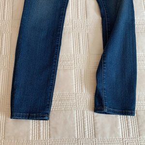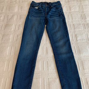Lightweight and stretchy, these skinny high-rise jeans, made from soft denim that lets you breathe, sit above the hip and are fitted through the hip and thigh. These jeans feature whiskering, details, zipper front with button closer, five-pocket styling, and back yoke. No rips, pulls or stains, from a smoke-free home. Message with any questions.