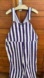 đź’śNearly New Purple & White Striped Bib Overalls Unisex GAME BIBS XL