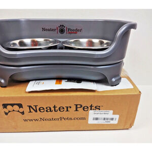 Mess-Proof Dog Bowls Feed Station Small Grey w 2 Stainless bowls by Neater Feeder is in new unused condition.