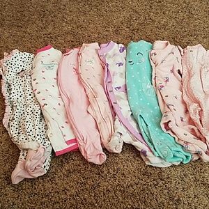 6 short sleeve onesies. 4 long sleeve onesies. 8 long sleeve footie pjs. 2 pants. Various brands. A few H&M, mostly just for you, some from kohls. All free from stains. Only ever washed in dreft.