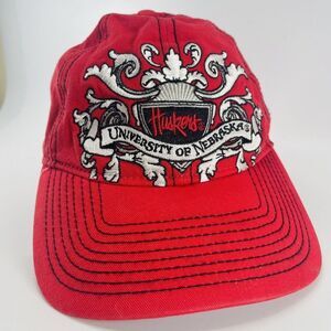 Nebraska Huskers Cap Strapback Hat Cornhuskers Red Silver Scroll Signatures NCAA