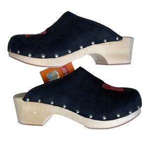 Get ready to show off your college spirit with these adorable Nebraska Cornhuskers women's clogs. Crafted with a microfiber upper and featuring a stylish "N" embroidery on a faux suede upper with a wood sole, these slip-on clogs are perfect for everyday wear. The 2" heel adds a touch of elegance while keeping you comfortable all day long. Classic nail-head stud detailing, black microfiber suede upper, detailed with embroidered NCAA team logo.