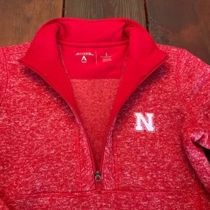Never worn Nebraska Husker 1/4 Zip Sweatshirt. purchased from Sheels. Women’s Size Small. Fits as such. Thanks for looking!