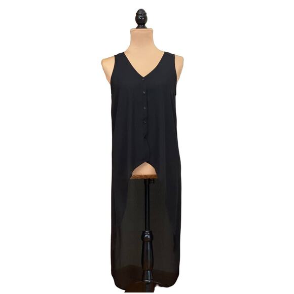 Necessary Objects High Low Button-Up Black Tunic Top Size Small