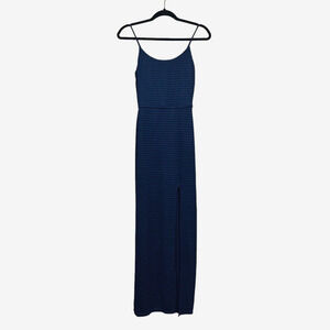 Necessary Objects Womens Maxi Dress Spaghetti Straps Half Lined Slit Navy Sz M