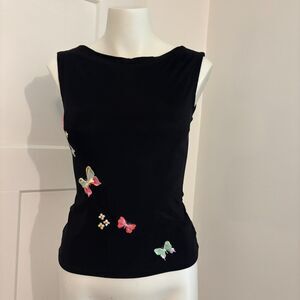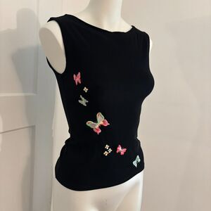 Necessary Objects size X Small Y2K Butterfly High Neck Black Stretchy Top