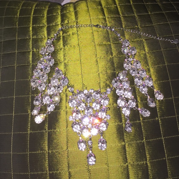 Sparkling silver very elegant neck piece ! Missing one stone ! Only worn one time to a ball room event!