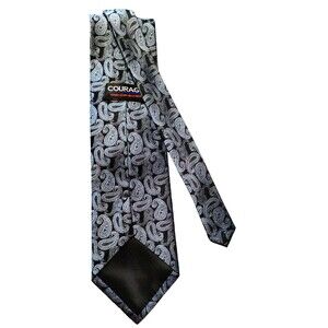 100% Silk Light Blue Black Paisley Men's Tie 60" Hand Sewn by Courage