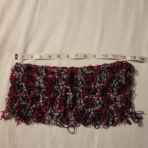 Handmade Neck Warner Scarf in beautiful tones of burgundy, black and white.