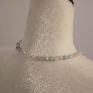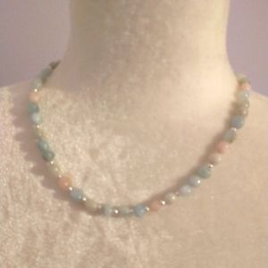 Handmade necklace. Aquamarine morganite and sterling silver. 18 in. Beautiful soft pinks and blues. Silver hook clap.