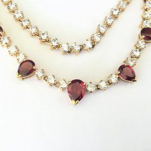 Necklace 18k Gold over 925 Sterling Ruby & Diamond Look Cubic Zirconia Prong Set