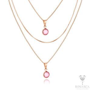 Necklace 3 layers rose gold plated 2 light pink Swarovski crystals box Ipsy bag