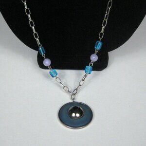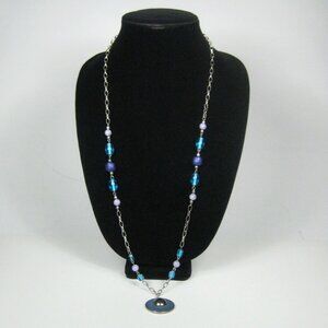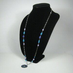 Necklace 32 In Silvetone Chain Pendant Strand Glass Beaded Blue Jewelry Women
