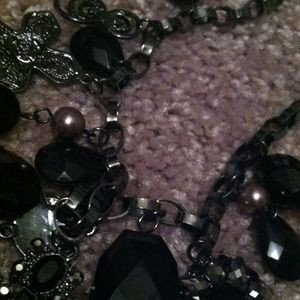 Black necklace with crosses on it. With little chain like links going up the sides. Cute and comes with matching earrings!