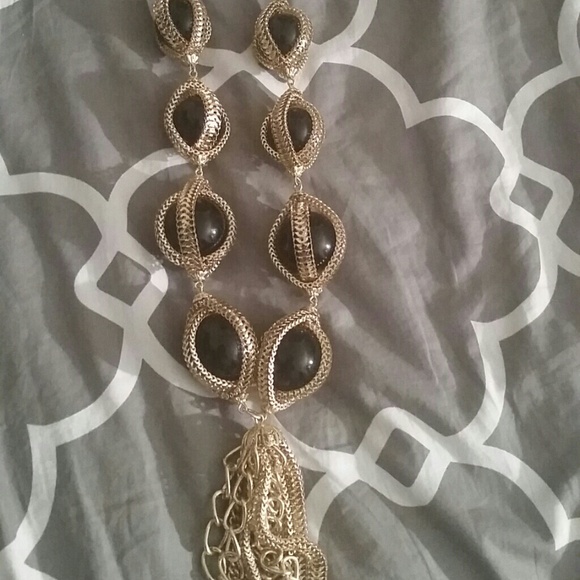 Beautiful bold statement rope necklace! Gold and black with tassels at the end!