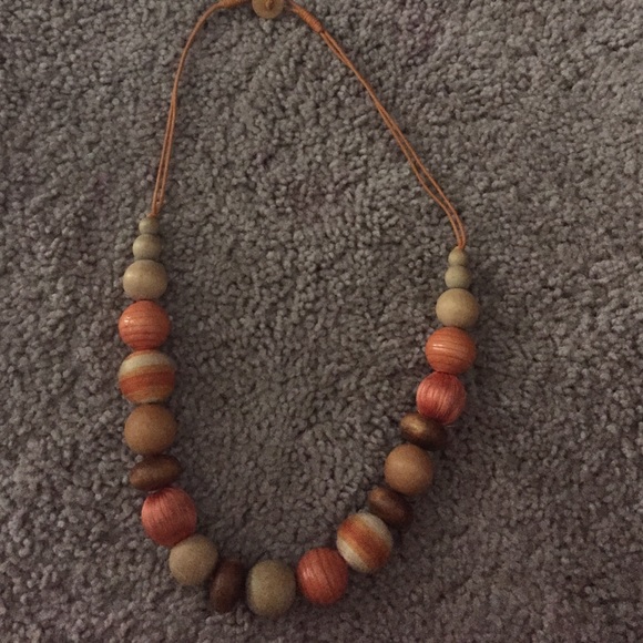 Orange necklace. Wooden. Slight blemish that looks unnoticeable.