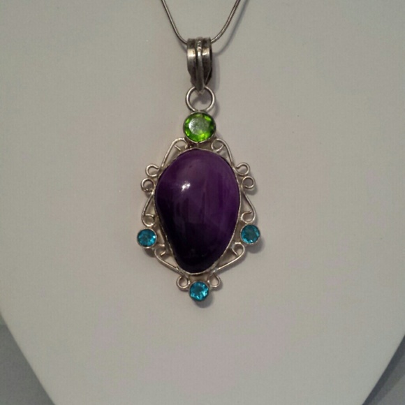 Stones set in 925 silver 18 in chain