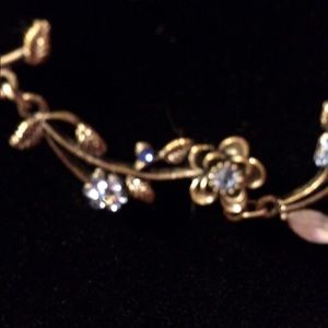 Sliver short flower necklace with blue rhinestones