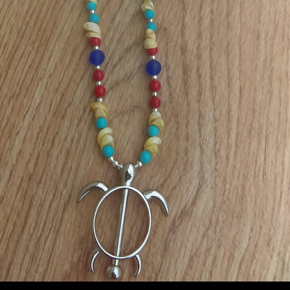 Ocean marine Sea Turtle, Blue Ocean Glass, Shells, Turquoise and Red Ocean Coral. Handmade by me.
