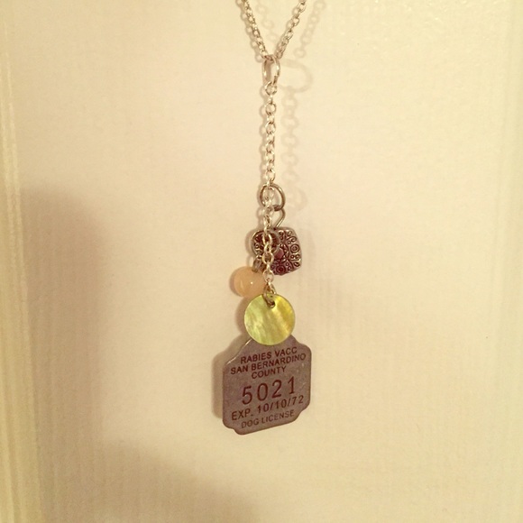 Length: 16 inches, dangle: 3 inches, "vintage" dog tag charm
