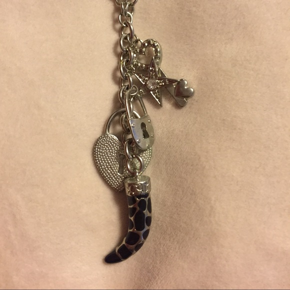 Great used condition. All charms are still attached to the necklace. Rhinestone still in place on the star. Longer necklace goes halfway down torso. OBO