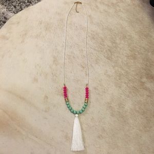Tassel necklace, pretty, bright beading. 20 in