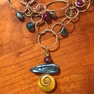 Fabulous, funky and fun colored freshwater pearl necklace. Double strand, silver hoops, lobster claw clasp. 11’ at longest, can be adjusted shorter. Don’t be ordinary. This is one of a kind design!