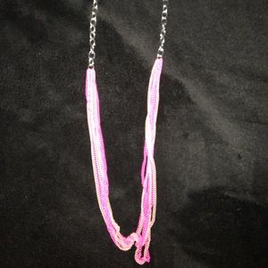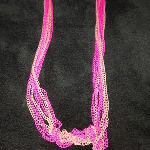 Hot pink and orange long necklace with “silver” chain accent. Bright colors perfect for summer 💖🧡