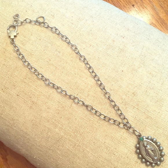 West Coast Cowgirl Design Silver Necklace with turquoise and heavy clasp adjustable chain.