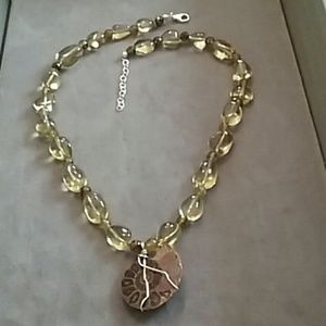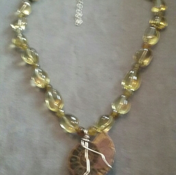 Liquid sunshine! Lemon quartz, crackle quartz, ammonite fossil, wrapped in s.s.wire .18 in. Length.handmade.