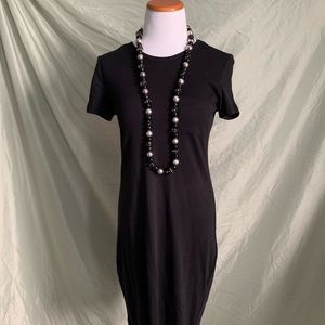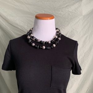 Necklace with plastic (possibly some glass based on the weight) beads in black, silver, and clear.