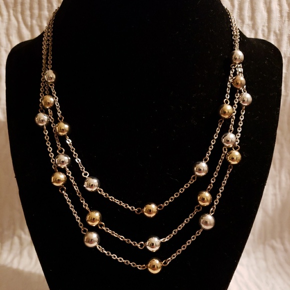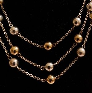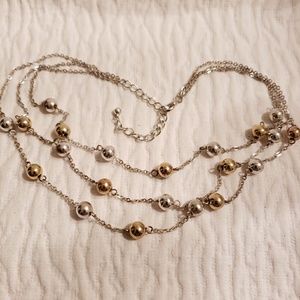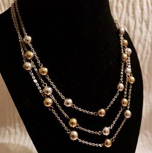 Costume Gold and Silver Metal Ball, 3 Strand Adjustable Chain Necklace
