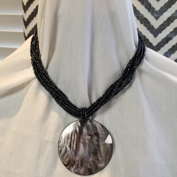 Necklace with silver mother of pearl disc. Beads are a gunmetal tone. Smoke free! Excellent condition. Reasonable offer acceptable. Feel free to bundle on multiple items you like!