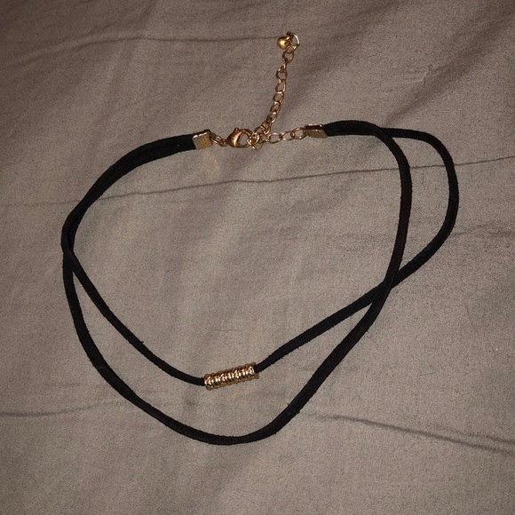 Black choker necklace with gold pendant! Adjustable size! Super cute with any color top!