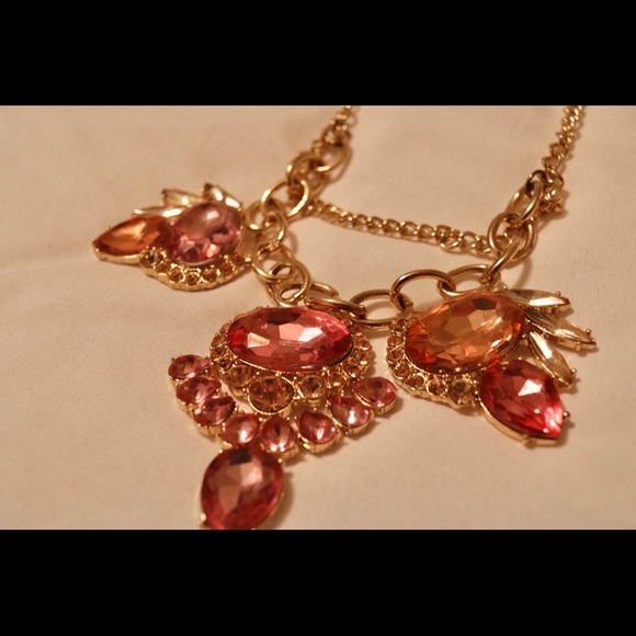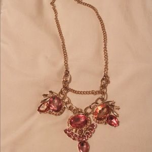 Gold adjustable necklace with accents of pink.