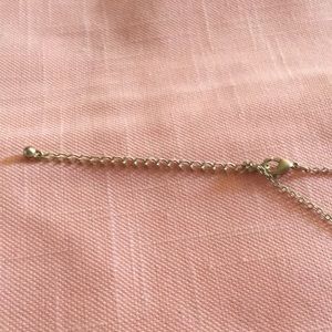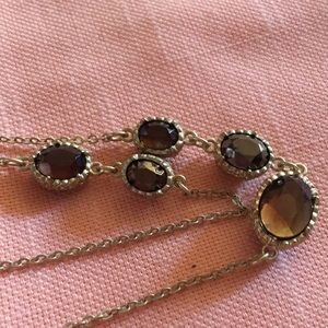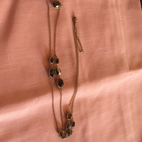 Gold tone, 34 inch, with a 3 inch. Extension. Brown crystals