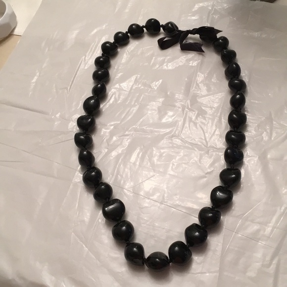 Ned size black beads . Its together with black rope and ties at the neck.