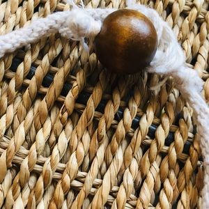 Handmade necklace, corre in cotton fabric with tassels in gold rings and wood closure.