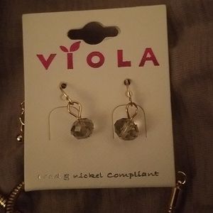 Gold tone, long necklace with black stone and tassel. Comes with small earrings. Beautiful piece of costume jewelry.