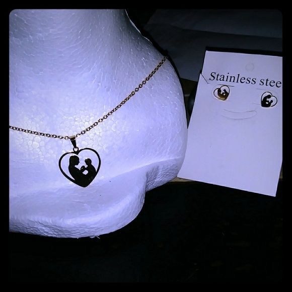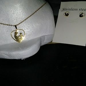 Beautiful Gold Mother and Child Necklace and matching Earrings.Great gift anytime.
