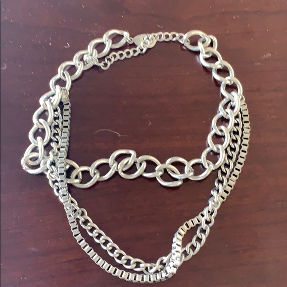Silver colored chain necklace, three layers