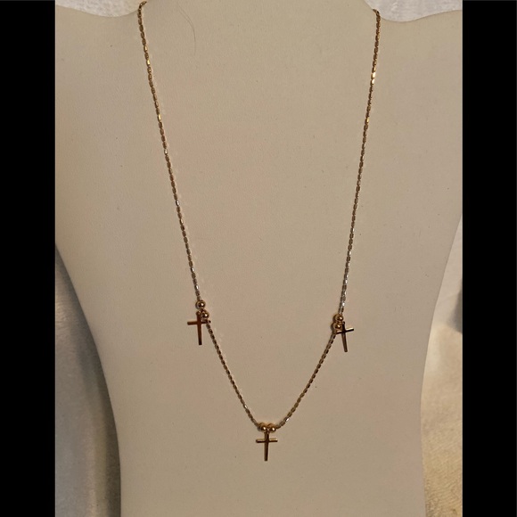 Gorgeous 925 Silver with rose gold overlay cross necklace crosses and beads are adjustable