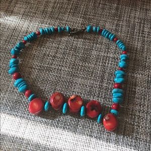 Necklace Natural turquoise and coral