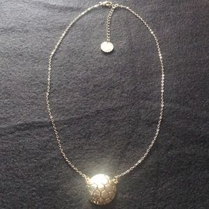 Round honey comb pendant, 18”, adjustable, never worn before, Gold tone necklace