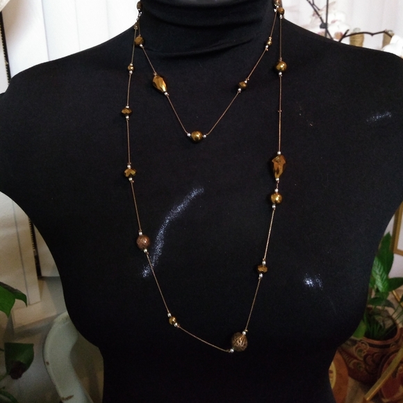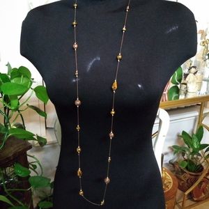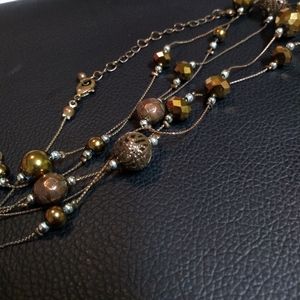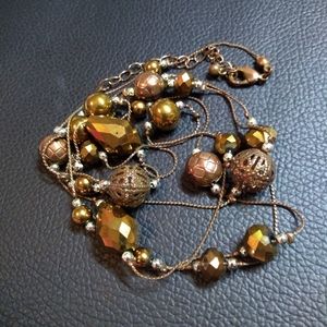 This is a long beaded brownish bronze necklace can be used two different ways.