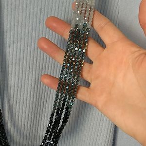Multi colored blue dazzling necklace length is about 15 inches, with gold chain