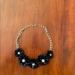 Black flower statement necklace. Gold adjustable chain. Worn a few times to formal events.