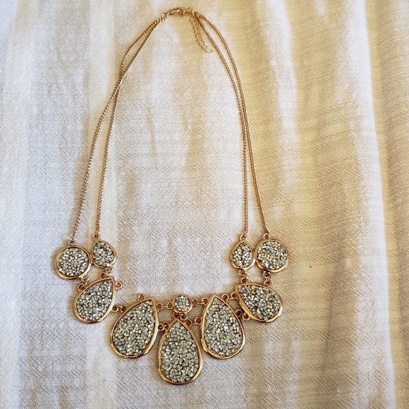 Gold and sparkly statement necklace, double chain and adjustable neck clasp