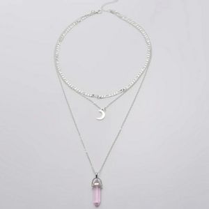 Natural Stone Bullet Pink Crystal Pendant Necklace For Women Jewelry