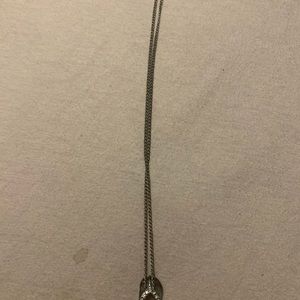 South Carolina sandal necklace. It is not that actual color the lighting in my room was off. The moon and palm tree are both white and around it is blue.